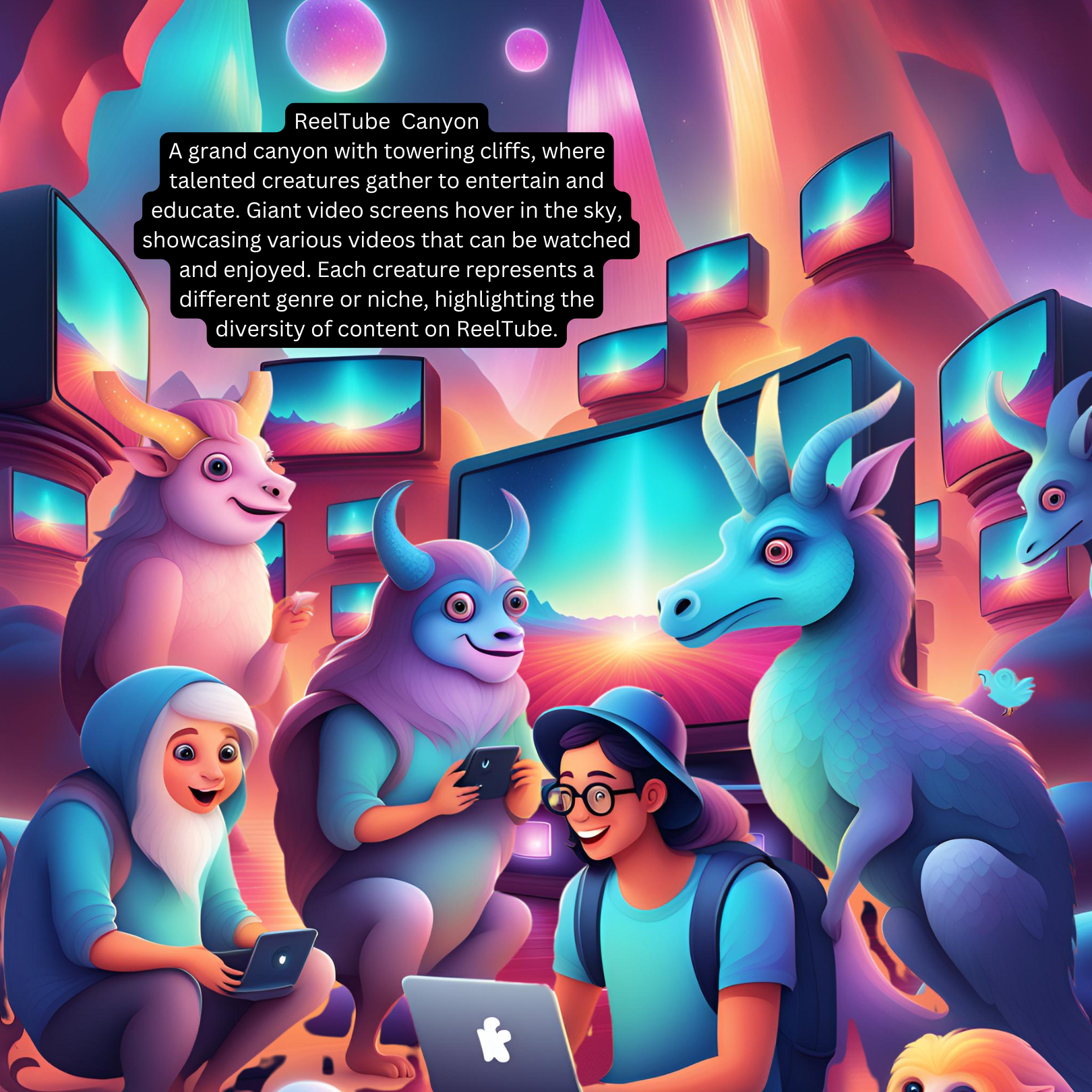 -Each "land" is a different part of a computer; within these “parts” are different rooms representing positive and negative messages.